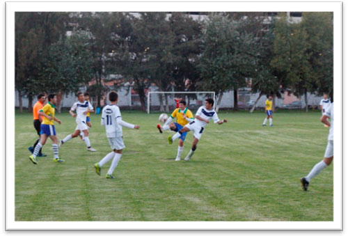 El partido comenzó a ponerse más interesante ya que ambos equipos llegaban al campo contrario a cada momento, la jugada terminaba cuando el portero tomaba el balón o rescataban un tiro de esquina. Hubo una jugada donde el equipo de Salesiano tuvo muchos tiros al arco de UCEM, sacando al portero de su área chica, tira Salesiano y el defensa central se lanza y con la pierna logra impedir el tercero en su contra.